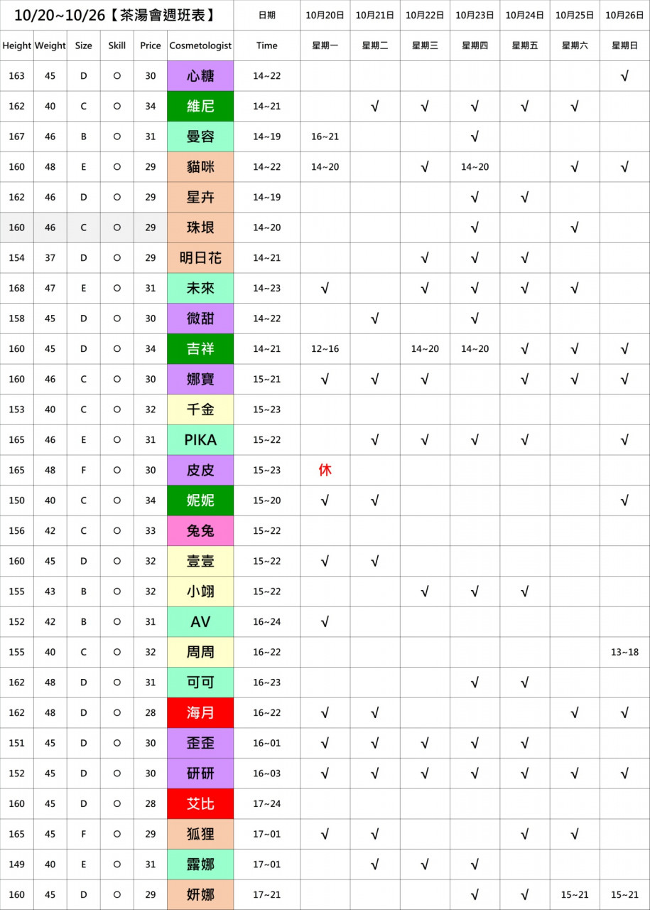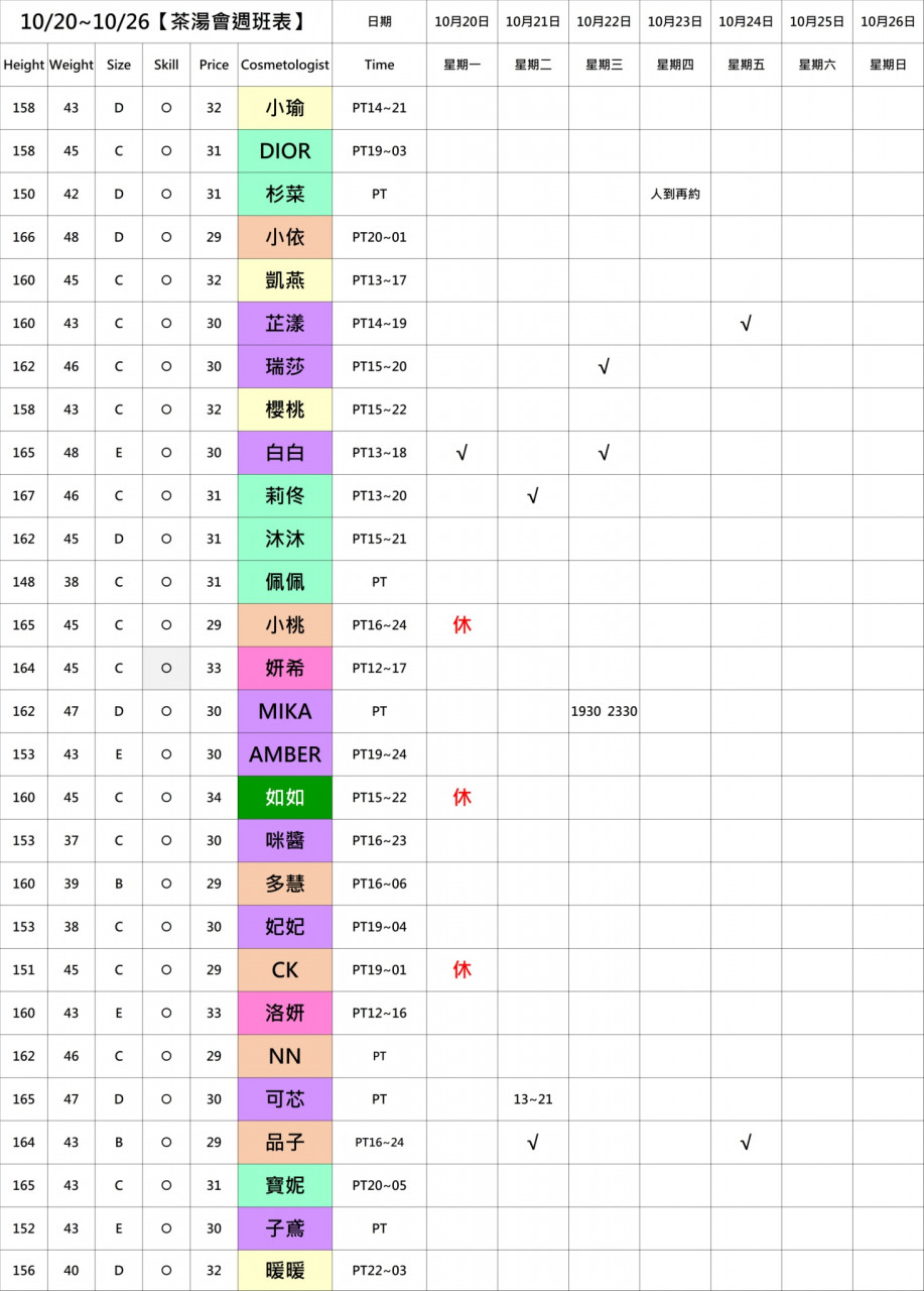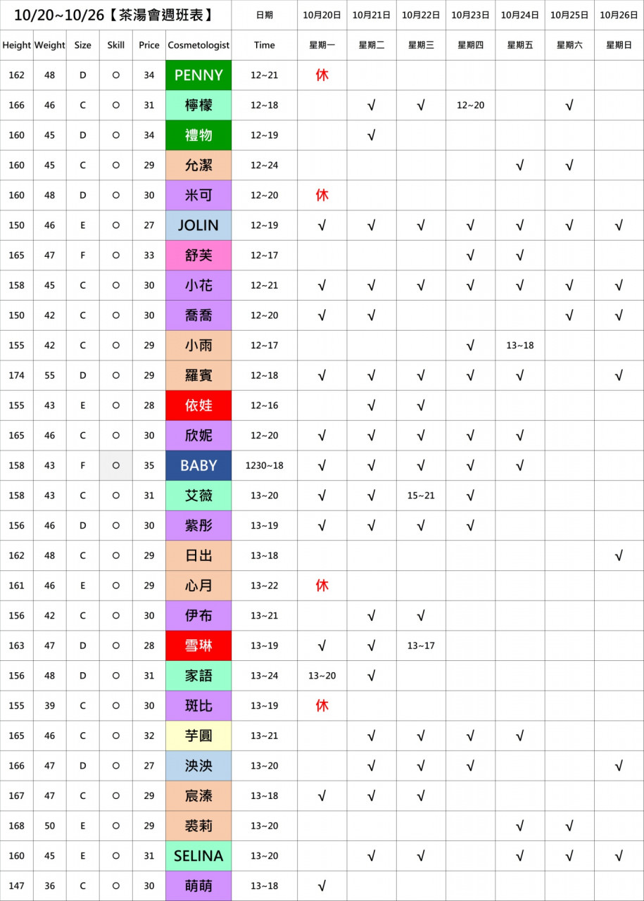 想預約或查詢當天班表?私訊洋洋小琪兒準沒錯!